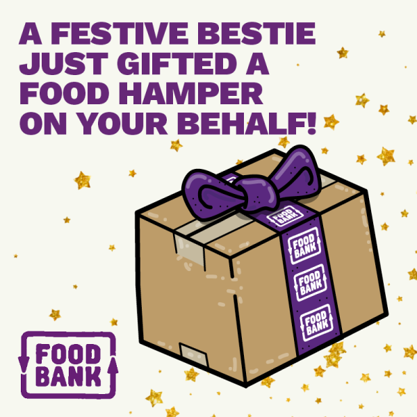 Foodbank sends food where it's needed and a thanks to your friend—twice the kindness, double the joy.